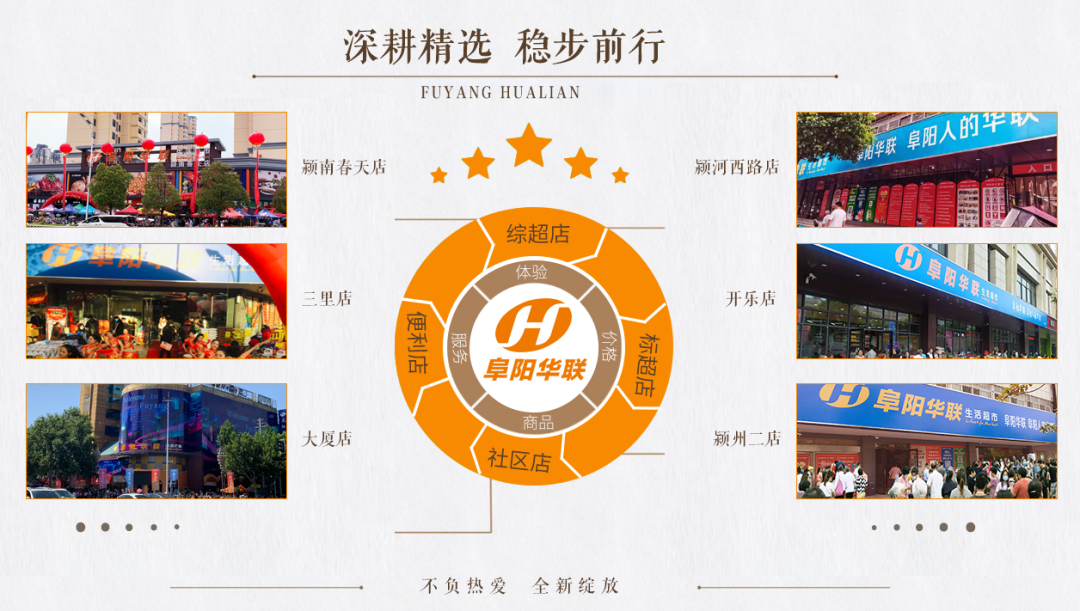 周邊3公里范圍居民人群基數大,且逐年增多,對大型超市的需求非常迫切。以周邊家庭客群為主要目標客群,強調生活與休閑娛樂(lè )的交流與融合。自1996年品牌創(chuàng )立,阜陽(yáng)華聯(lián)不斷創(chuàng )新,用多元化的業(yè)態(tài)來(lái)布局市場(chǎng),目前有綜超店、標超店、社區店、便利店等四大業(yè)態(tài),逐漸實(shí)現一個(gè)個(gè)步行10分鐘“華聯(lián)商圈”。
