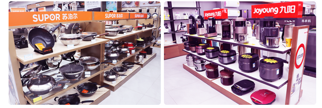 康巴赫不粘炒鍋、蘇泊爾系列炒鍋、榮事達系列電飯煲,九陽(yáng)系列豆漿機等