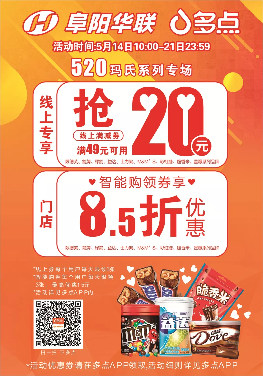 【阜陽(yáng)華聯(lián)】520德芙滿(mǎn)49元減20元,百雀羚約你見(jiàn)“面”