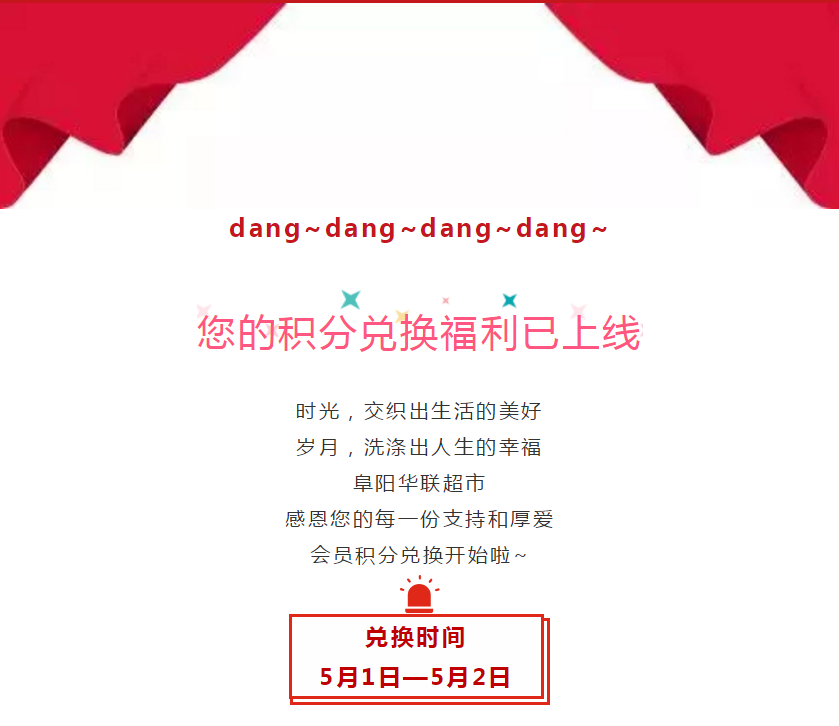 【阜陽(yáng)華聯(lián)】5月1—2日,會(huì )員積分兌換福利速來(lái)圍觀(guān)!