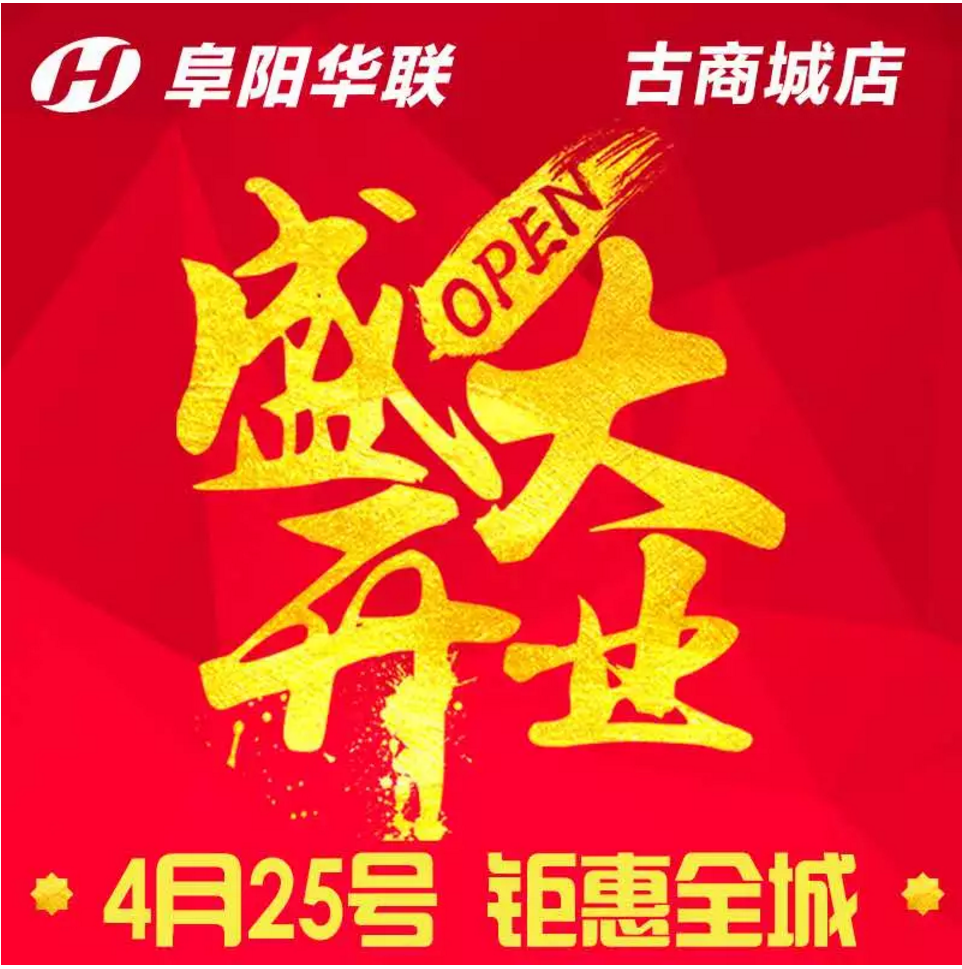 【阜陽(yáng)華聯(lián)】古商城店盛大開(kāi)業(yè),鉅惠全城,等你來(lái)?yè)專(zhuān)?/h1>