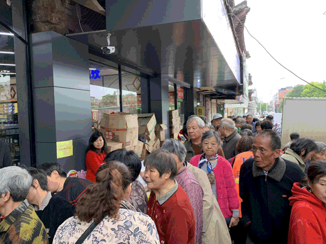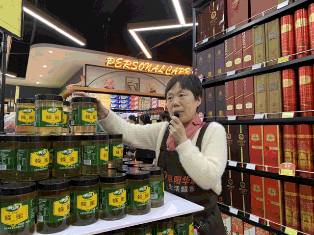 工作人員為年滿(mǎn)60的顧客免費領(lǐng)取1000g金沙河掛面,顧客都為華聯(lián)豎起大拇指!贊的不止是商品,更是服務(wù)!