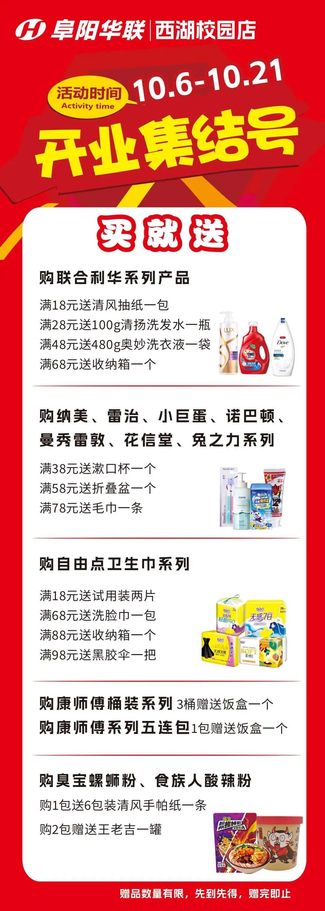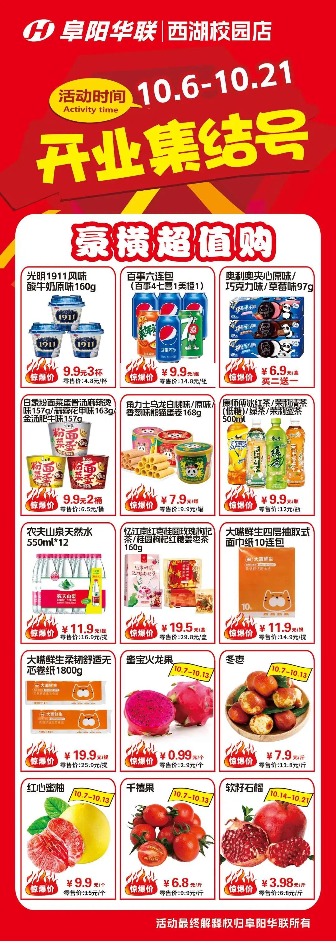 阜陽(yáng)華聯(lián)·西湖校園店10月6號盛大開(kāi)業(yè)!買(mǎi)就送、爆品超值購.....