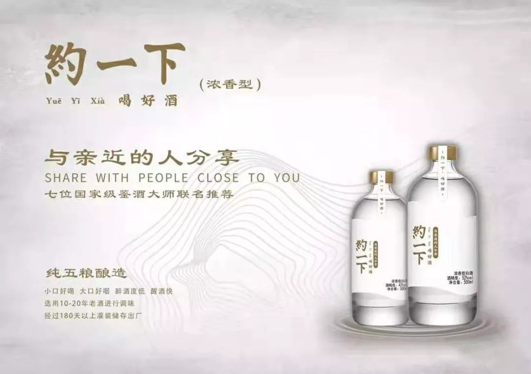“約一下”酒體無(wú)色透明,窖香、糧香復合優(yōu)雅,綿柔甘潤,自然協(xié)調,余味爽凈,具有濃香型白酒的典型風(fēng)格。