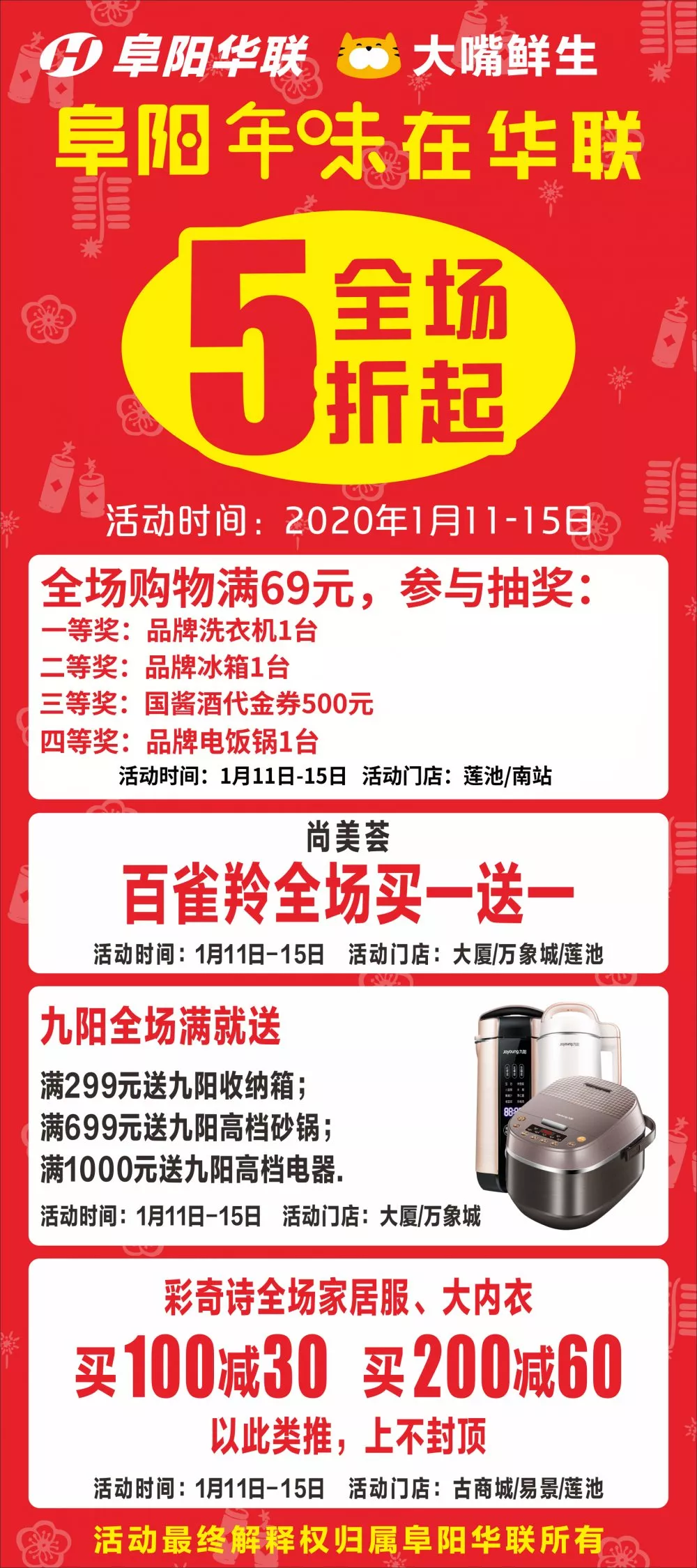 【阜陽(yáng)華聯(lián)】新年大促,全場(chǎng)商品5折起!購物還能抽冰箱!