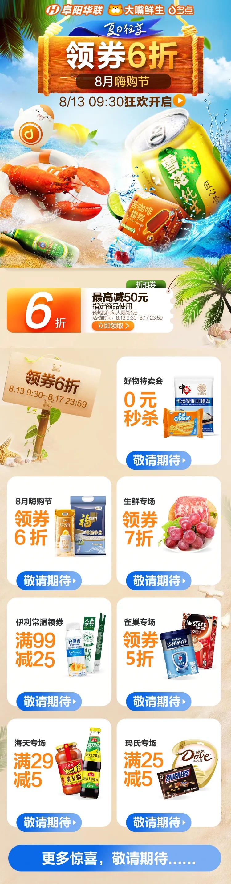 阜陽(yáng)華聯(lián) | 8月線(xiàn)上嗨購節預告來(lái)襲~搶6折神券,越購越嗨皮!
