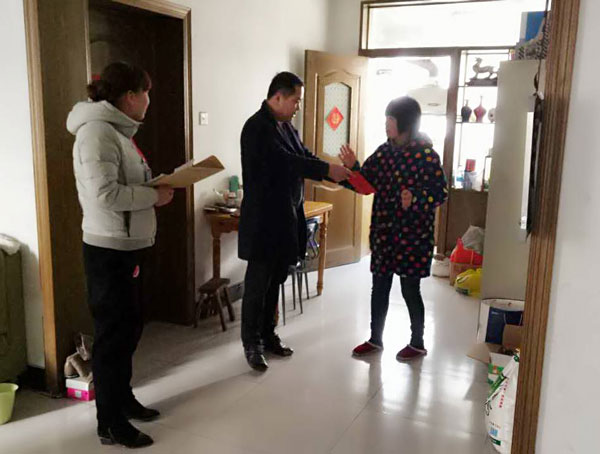 走訪(fǎng)慰問(wèn)送溫暖,濃濃關(guān)懷顯真情。2月10日,阜陽(yáng)華聯(lián)集團總經(jīng)理樊曉俐、副總經(jīng)理張曉東、李莉、工會(huì )主席周軍代表公司對企業(yè)特困職工進(jìn)行走訪(fǎng)慰問(wèn),向他們致以元宵佳節的祝福和真摯的問(wèn)候,并將慰問(wèn)金送到員工的家中。