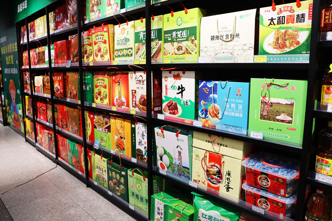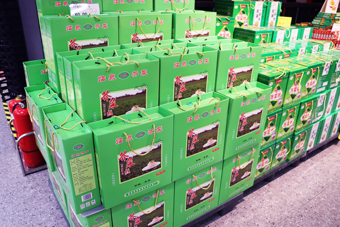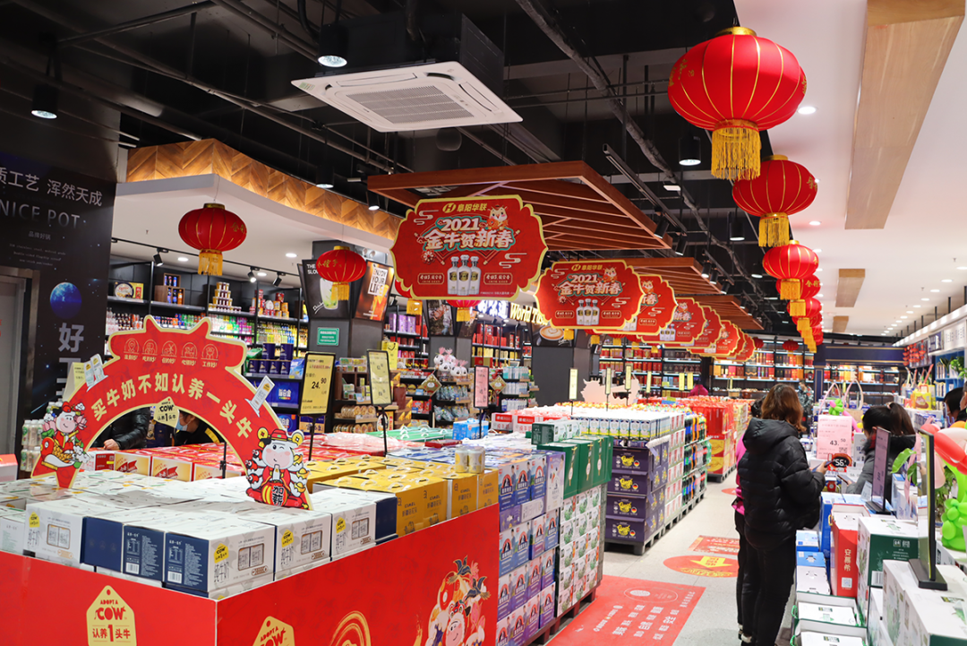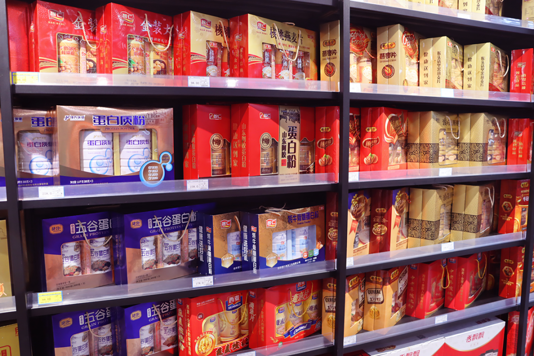 整齊的貨架上,年貨琳瑯滿(mǎn)目,