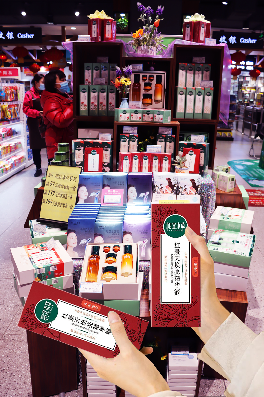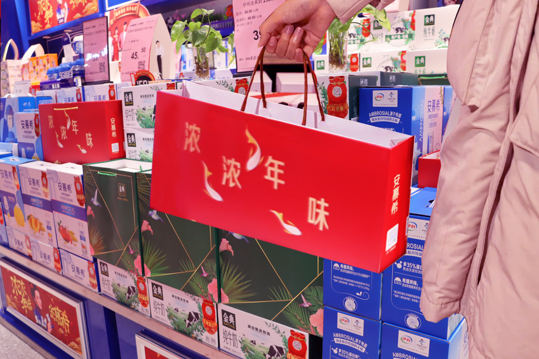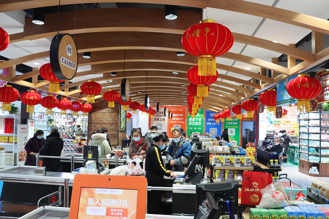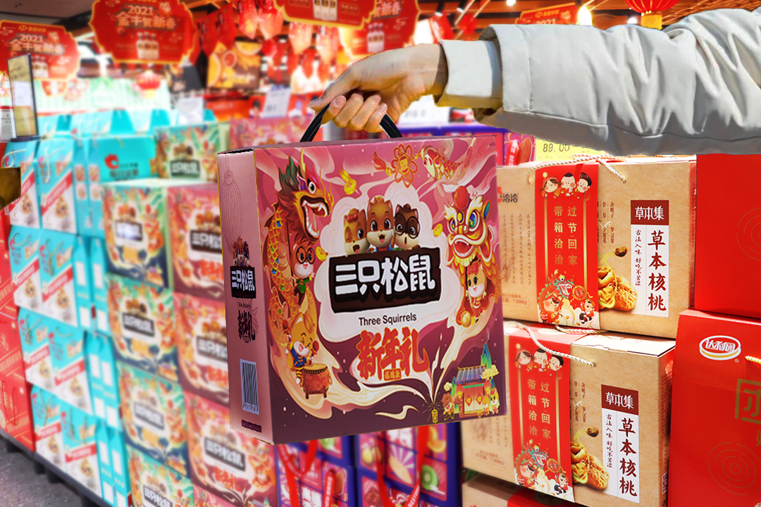 整齊的貨架上,年貨琳瑯滿(mǎn)目,