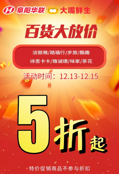 【阜陽(yáng)華聯(lián)】第二波年終大促,不止5折眾多商品華麗返場(chǎng)!