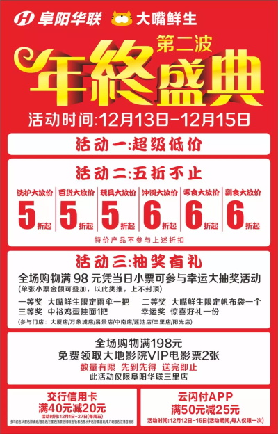 阜陽(yáng)華聯(lián)第二波年終大促華麗返場(chǎng)了!
