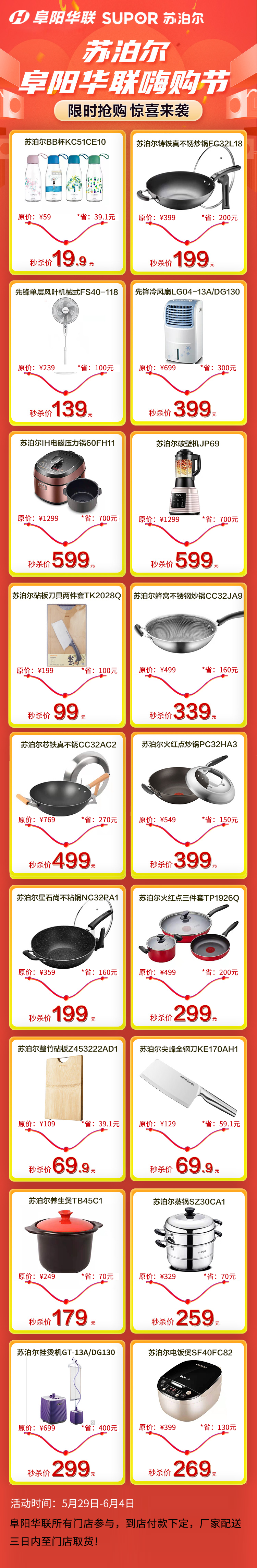 來(lái)阜陽(yáng)華聯(lián)搶購蘇泊爾品牌商品吧 !