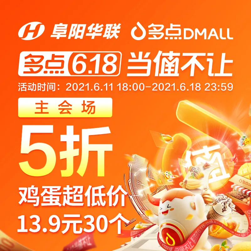 「阜陽(yáng)華聯(lián)&多點(diǎn)618」主場(chǎng)5折!30枚雞蛋到手價(jià)僅13.9元??!