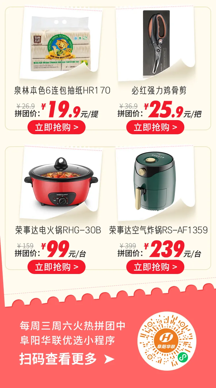 阜陽(yáng)華聯(lián)優(yōu)選 | 第49周拼團,主推>>冬季美食、保暖好物…