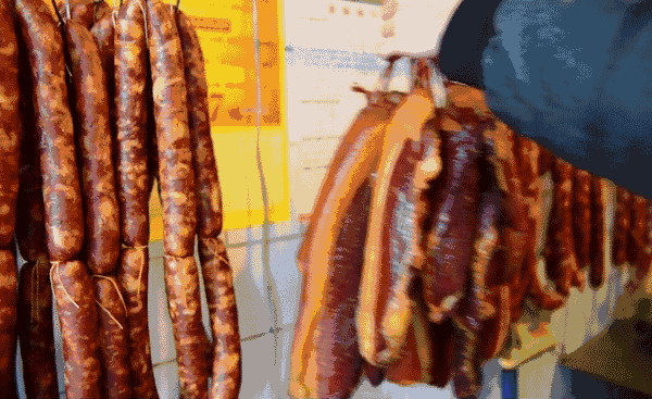 便掛起一排排粉光脂艷、油香繞梁的臘味