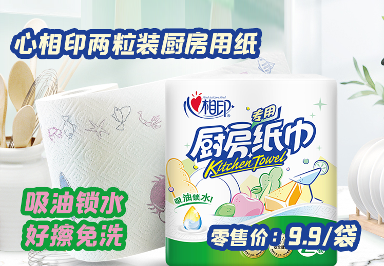 -----------------------------廚房用紙比傳統抹布安全衛生,不用擔心抹布細菌多,特別是處理表面水份大的食物,很有用。吸水率強,方便相比其他紙張不散不爛不留絮,集合以上優(yōu)點(diǎn)就屬——心相印兩粒裝廚房用紙,yyds!
